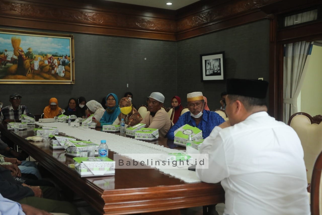 Gubernur Kepulauan Bangka Belitung, Erzaldi Rosman menemui 15 warga asal Sadai, Kabupaten Bangka Selatan, yang akan menjalani operasi mata katarak, di Rumah Dinas Gubernur, Jumat (23/11/21) siang.