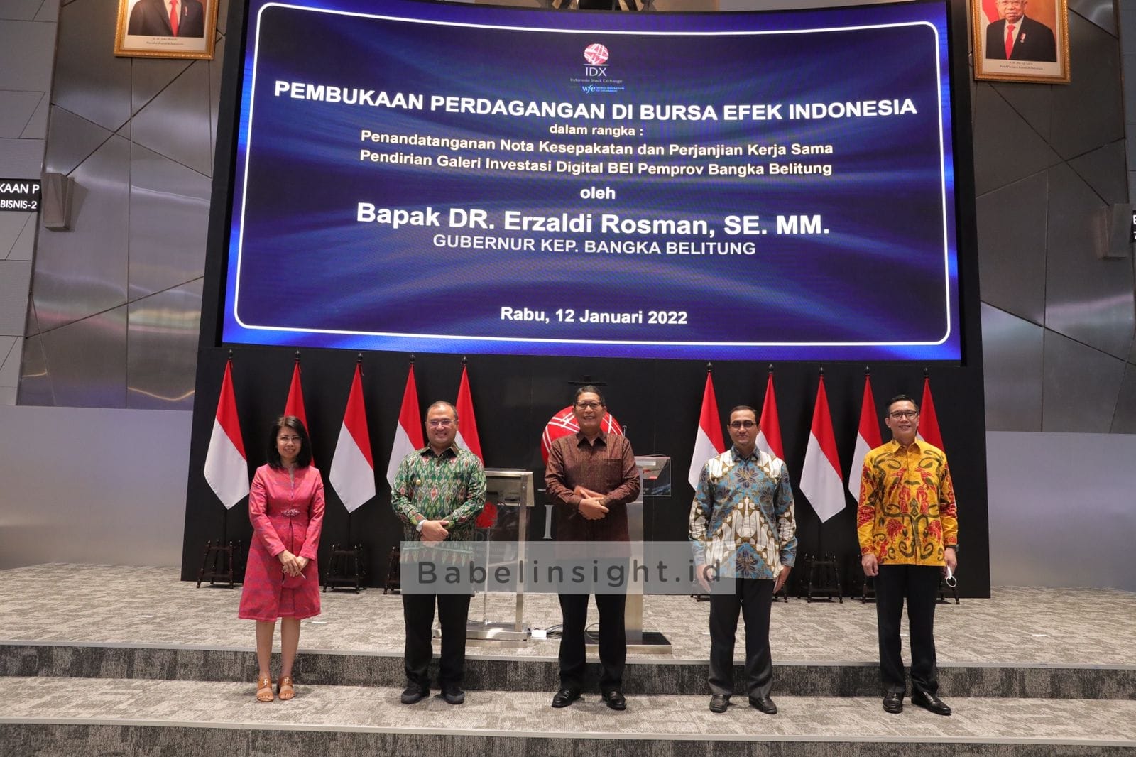 "Tujuan kerjasama itu tidak lain agar investor lokal (Babel, red) maupun masyarakat melek terhadap dunia pasar modal ini," kata Gubernur Babel, Erzaldi Rosman saat menjadi pembicara dalam acara 'Market Review' bersama Indonesia Stock Exchange (IDX) atau Bursa Efek Indonesia (BEI) secara virtual, Rabu (12/1/22).