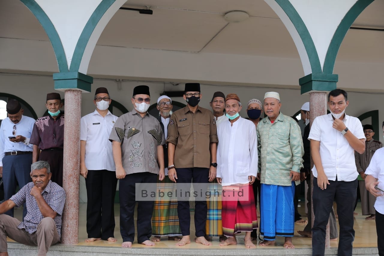 Di sela-sela kesibukan kunjungan kerja Menteri Pariwisata dan Ekonomi Kreatif RI Sandiaga Salahuddin Uno ke Provinsi Kepulauan Bangka Belitung (Babel) dan rombongan didampingi Gubernur Babel Erzaldi Rosman menyempatkan diri bersilaturahmi dengan jemaah masjid Jamik Pangkalpinang sekaligus salat Zuhur di masjid tersebut, Rabu ( 20/04/22).