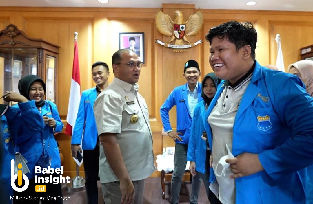 Herlanda Saputra (Depan, memegang masker) mendapat atensi khusus dari Gubernur Babel periode 2017-2022 Erzaldi Rosman saat ia menerima audiensi mahasiswa/foto: babelinsight.id