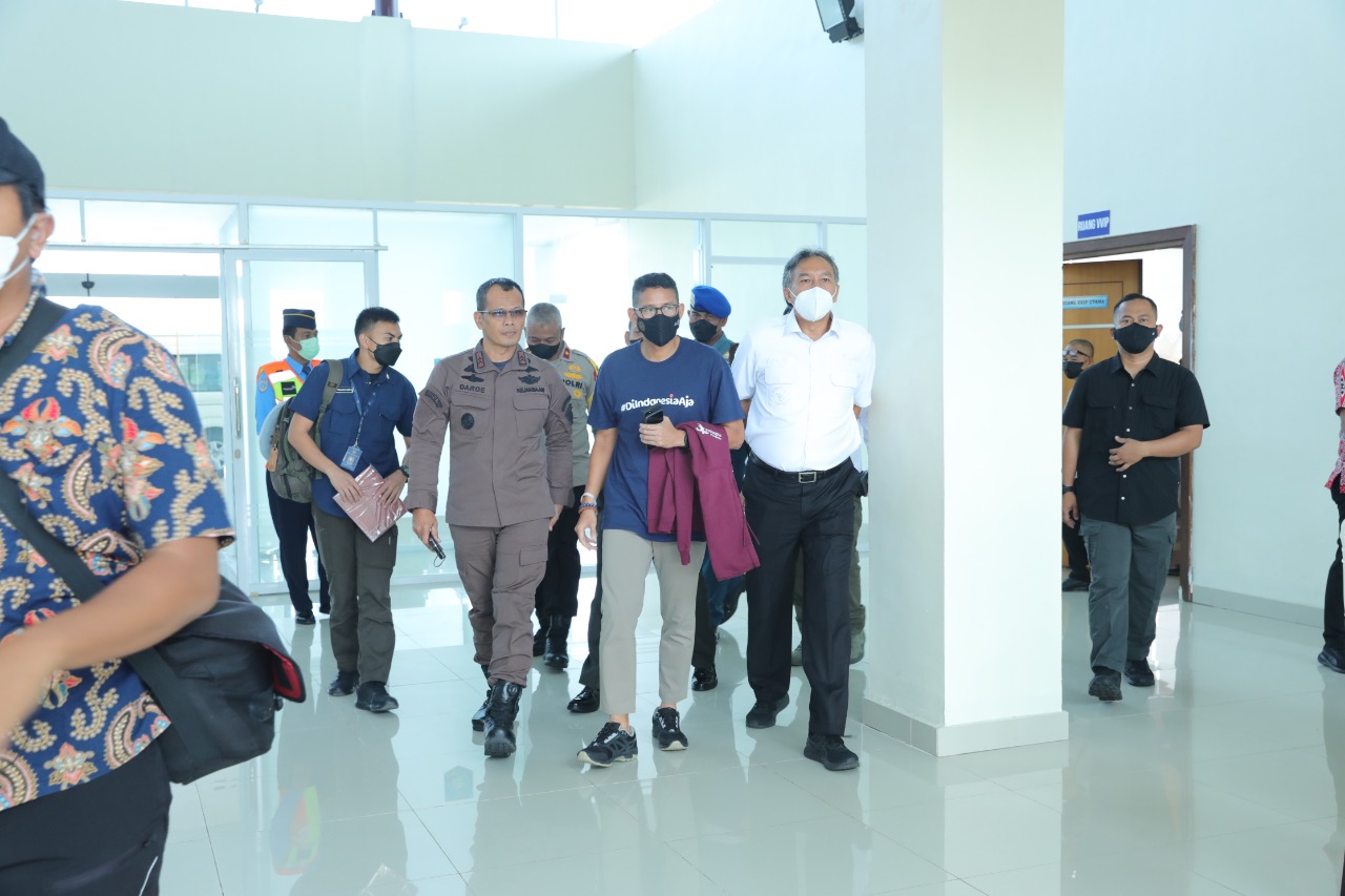 Menteri Pariwisata dan Ekonomi Kreatif, Sandiaga Uno saat tiba di pintu kedatangan Bandar Udara Depati Amir Pangkalpinang, Kamis (11/8/22) (foto: IKP Diskominfo Babel)