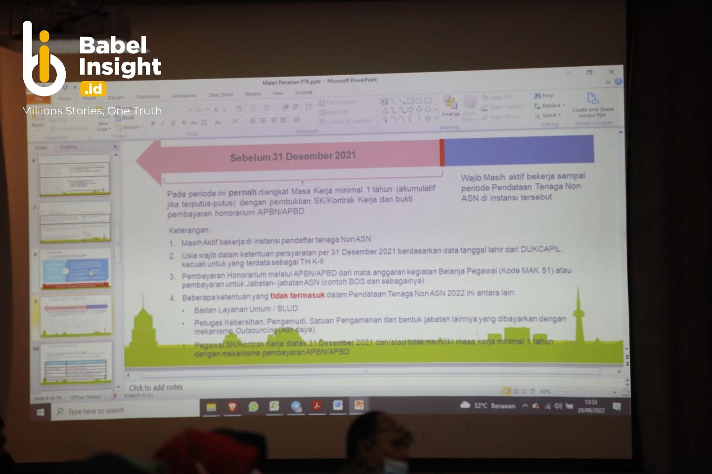 Diberitakan sebelumnya, terdapat tiga jabatan yang tidak dapat dimasukkan dalam pendataan non-ASN oleh Badan Kepegawaian dan Pengembangan Sumber Daya Manusia Daerah (BKPSDMD) Babel, yakni supir, tenaga keamanan, dan tenaga kebersihan.