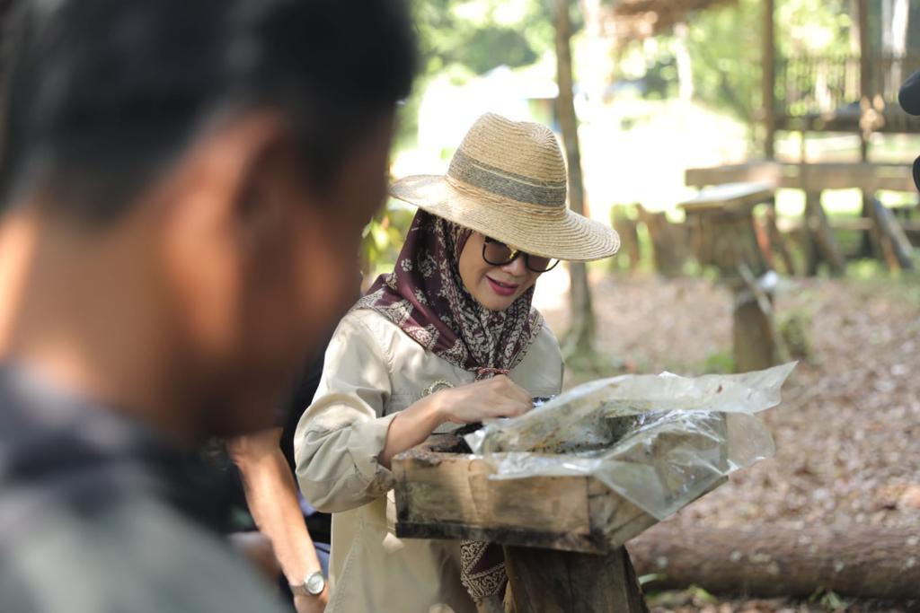 Ketua APIDA Kepulauan Bangka Belitung saat mencoba Madu Trigona menggunakan Eco Straw dari bahan resam/Foto: babelinsight.id