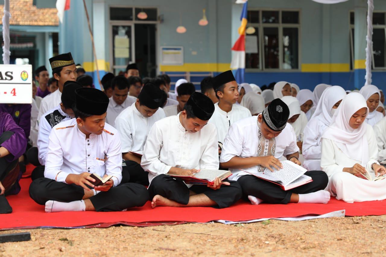 Siswa-Siswi SMA N 4 Pangkalpinang sudah menerapkan membaca Alquran sebelum memulai kegiatan belajar. Foto : babelinsight.id