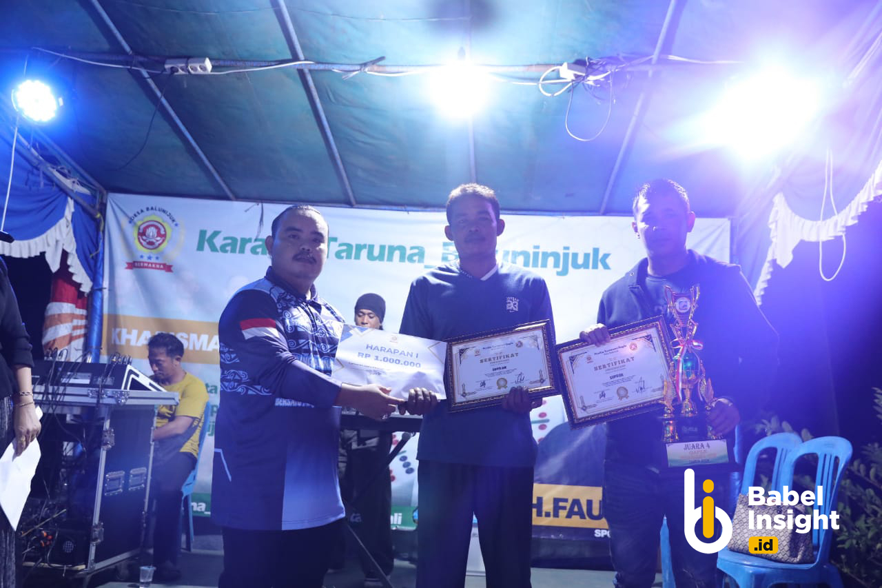 Usai sudah turnamen gaple Kharisma Cup 2024 yang digelar oleh salah satu tokoh Desa Balun Ijuk, Kecamatan Merawang, Kabupaten Bangka. Penutupan turnamen dilakukan langsung oleh Erzaldi Rosman, Selasa (29/10/2024).