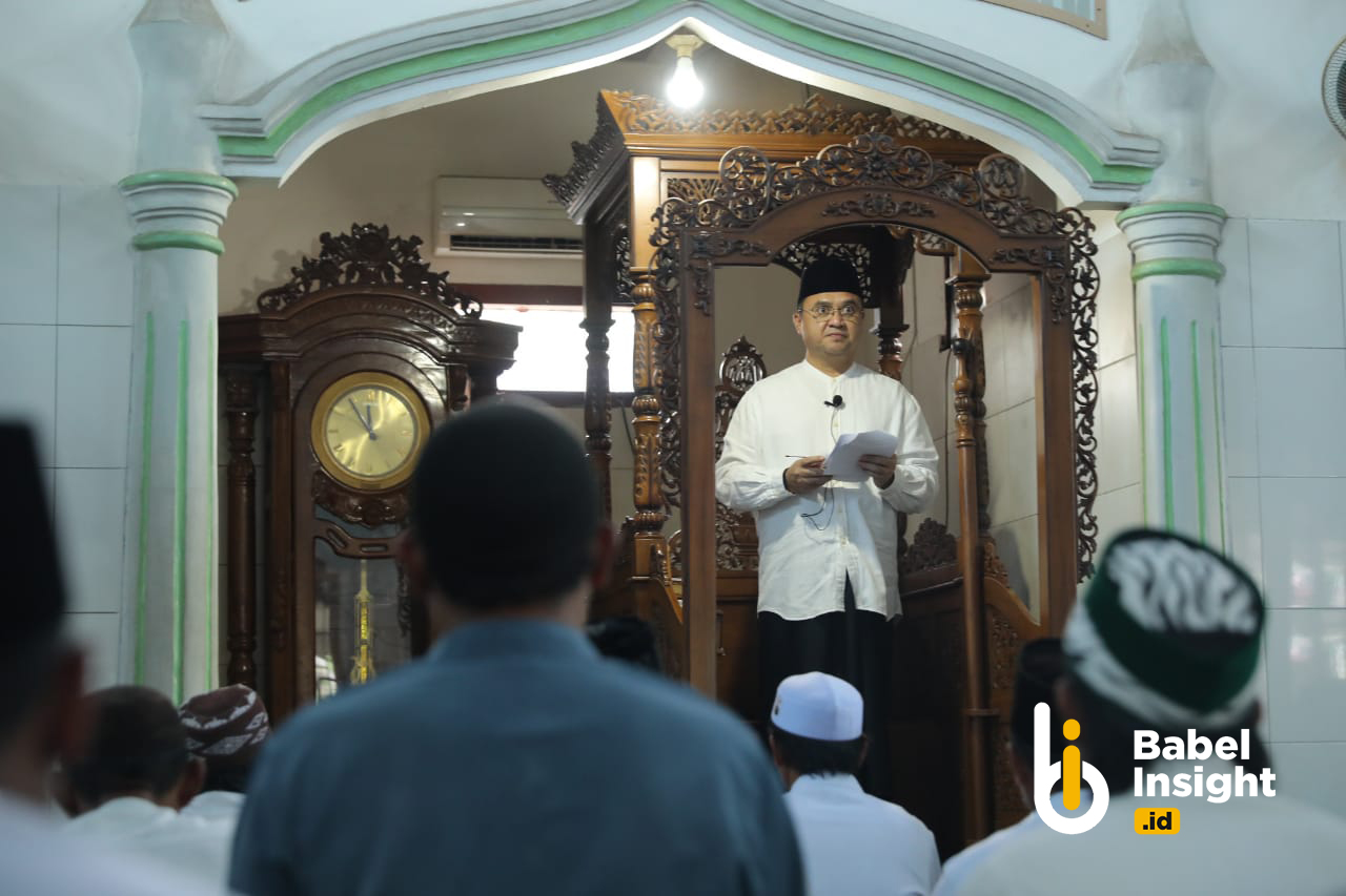 Erzaldi Rosman dalam khutbahnya menyerukan persatuan umat dan kemenangan di bulan Jumadil Awal/Foto: babelinsight.id