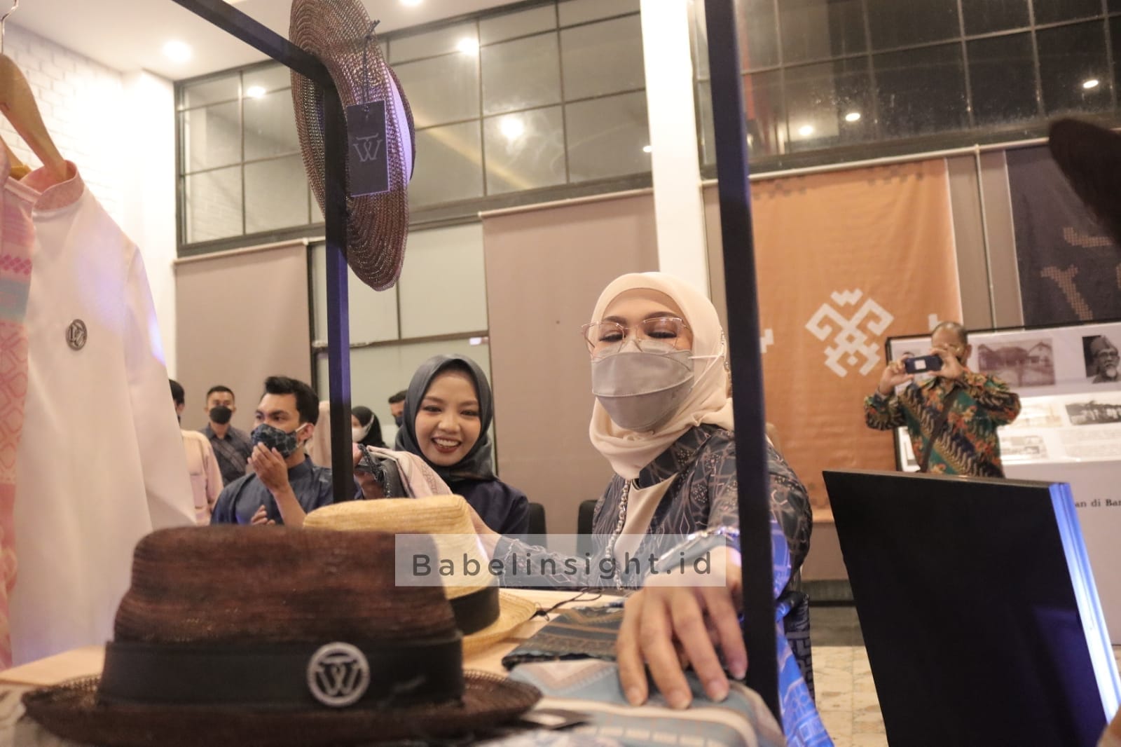 Para undangan yang hadir malam itu disuguhkan dengan penampilan para model yang memamerkan berbagai karya Finalia dan kawan-kawan. Hadirin yang menyaksikan, semakin terpukau ketika Ibu Melati Erzaldi turut menjadi model fashion show. Dengan mengenakan topi, serta baju dengan motif Interior Menumbing dan selendang, istri dari orang nomor satu di Babel ini terlihat anggun di atas catwalk.