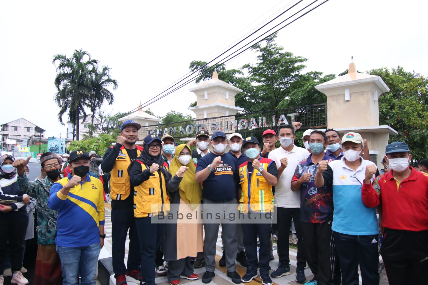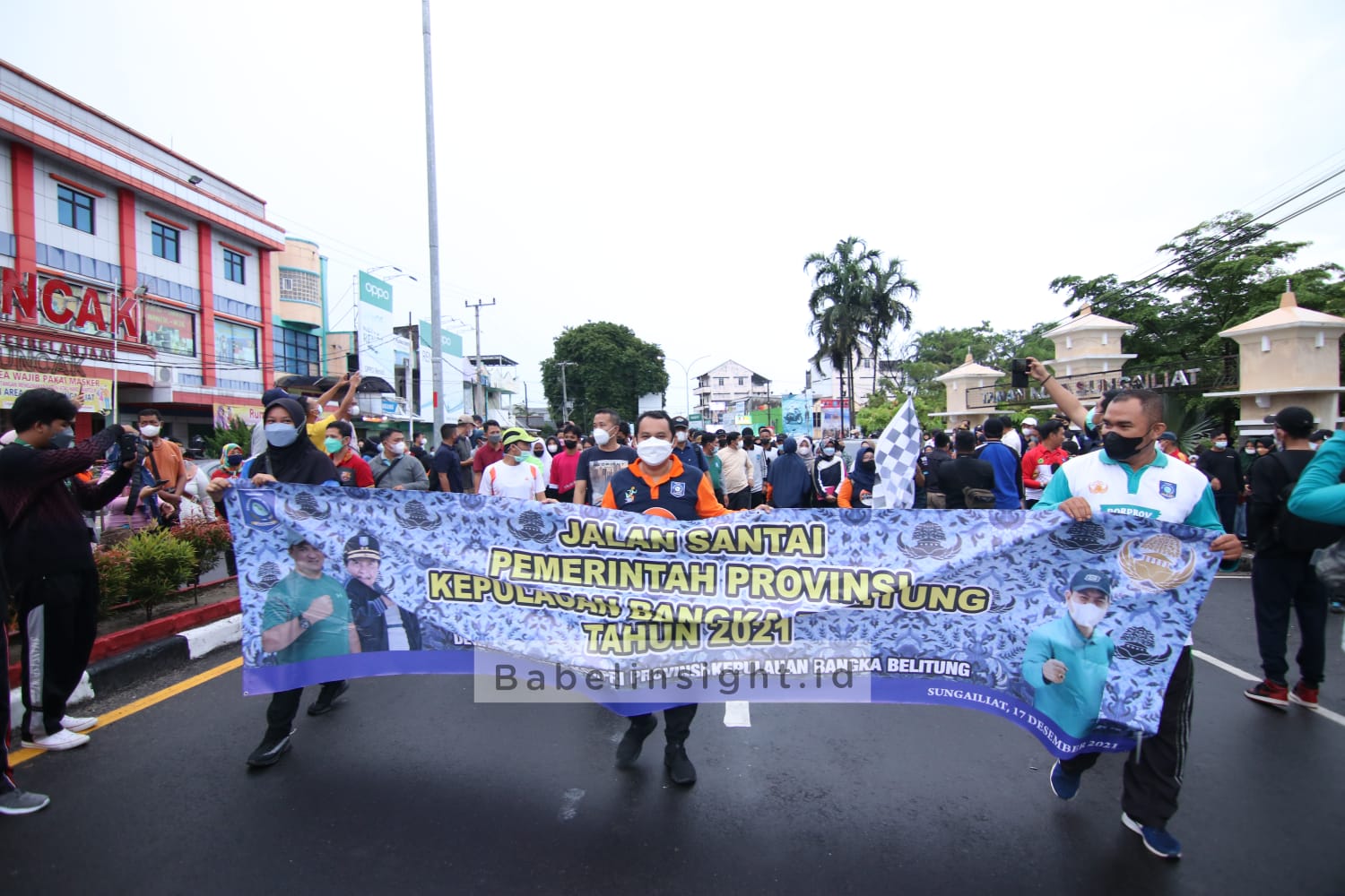 Jalan sehat menyusuri Jalan Jendral Sudirman Sungailiat, hingga belok ke kiri Simpang Perahu, Gubernur Babel beserta rombongan, selesai di Masjid Muhajirin, Lingkar Rambak, Sungailiat.