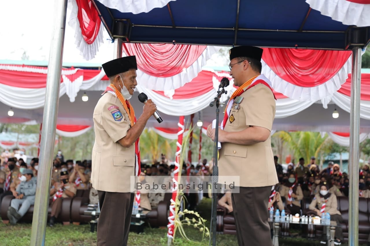 Selain Jian, Gubernur Erzaldi juga memberangkatkan pembina paling sepuh di Kwarda Babel, yaitu Kak Latif sebagai apresiasinya, karena telah lebih dari 30 tahun mendedikasikan dan mengabdikan diri menjadi pembina dalam pembentukan karakter generasi muda Bangka Belitung.