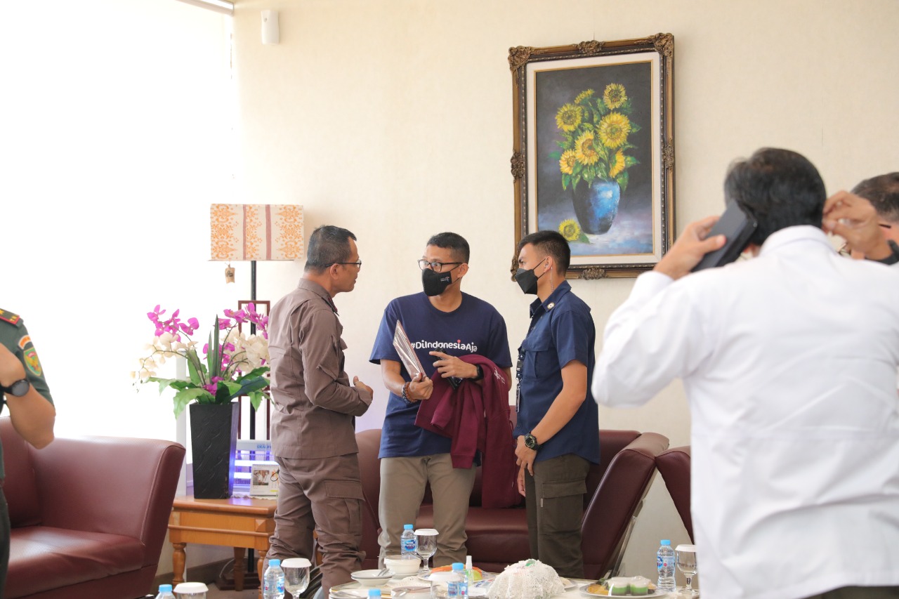 Menteri Pariwisata dan Ekonomi Kreatif, Sandiaga Uno berbincang di ruang VVIP Bandar Udara Depati Amir, Kamis (11/8/22) (foto: IKP Diskominfo Babel)