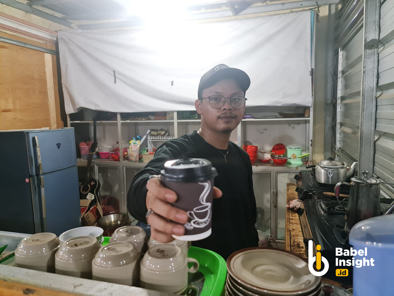 Panca Wahyudi merasa bangga dan senang Erzaldi Rosman memberikan jalan baginya untuk mengembangkan keahliannya sebagai barista. Foto: babelinsight.id.