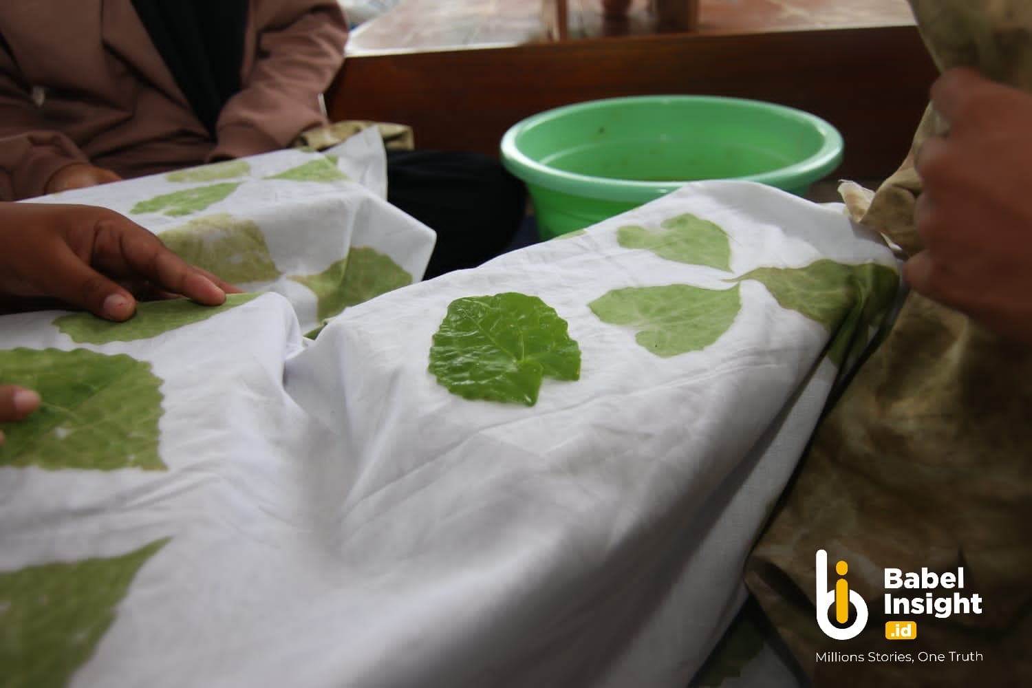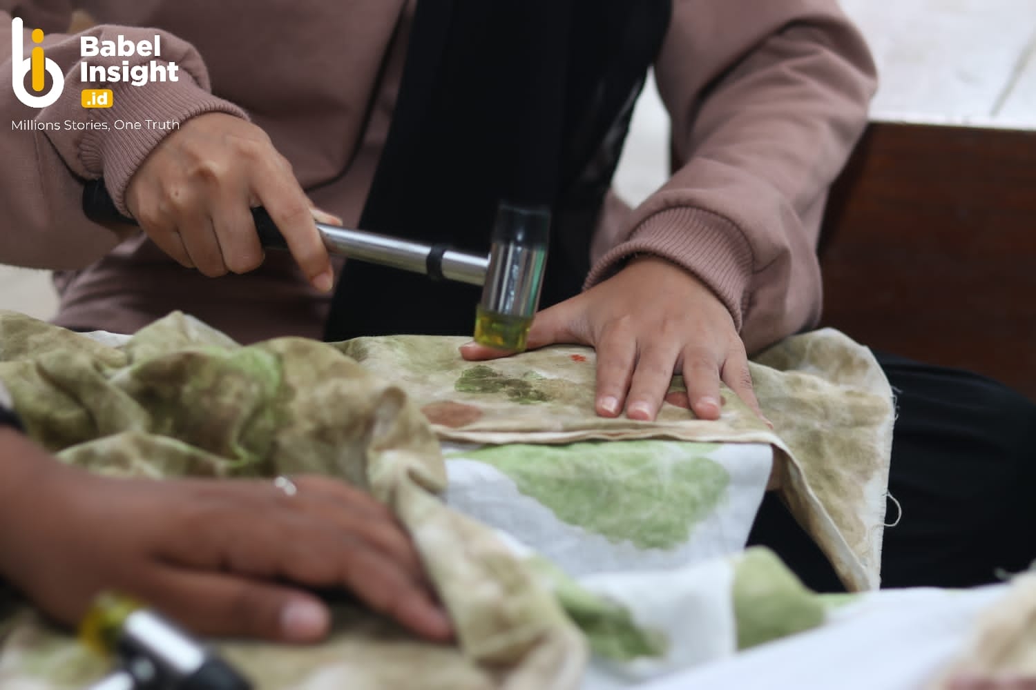 Tim Babelinsight.id berkesempatan untuk melihat langsung proses pembuatan kain ecoprint dengan tehnik Hammering dan berbincang dengan Bella. pemilik Sepiak Belitung bersama beberapa orang timnya