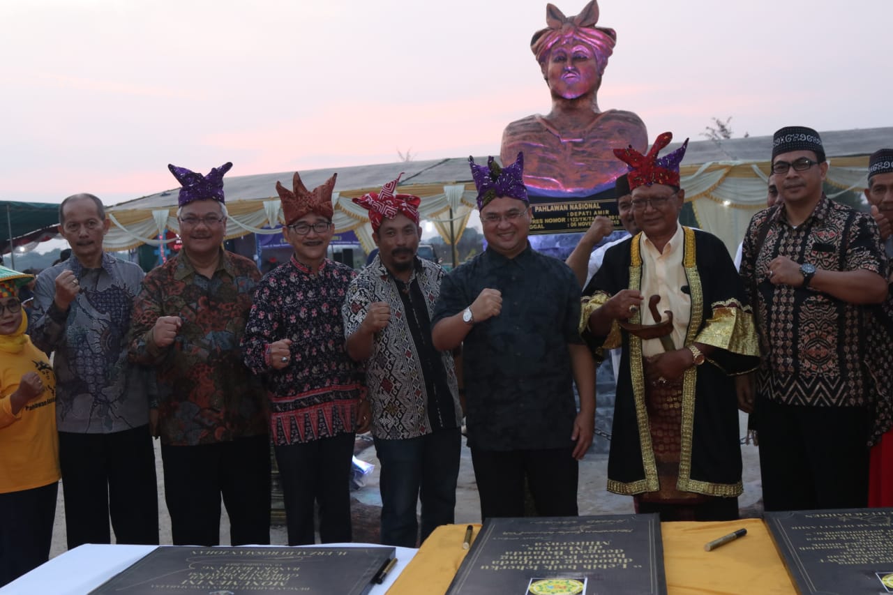 Gubernur Kepulauan Bangka Belitung Periode 2017-2022, Erzaldi Rosman saat meresmikan patung untuk mengenang Jasa dan Perjuangan Depati Amir/foto: humasprobabel
