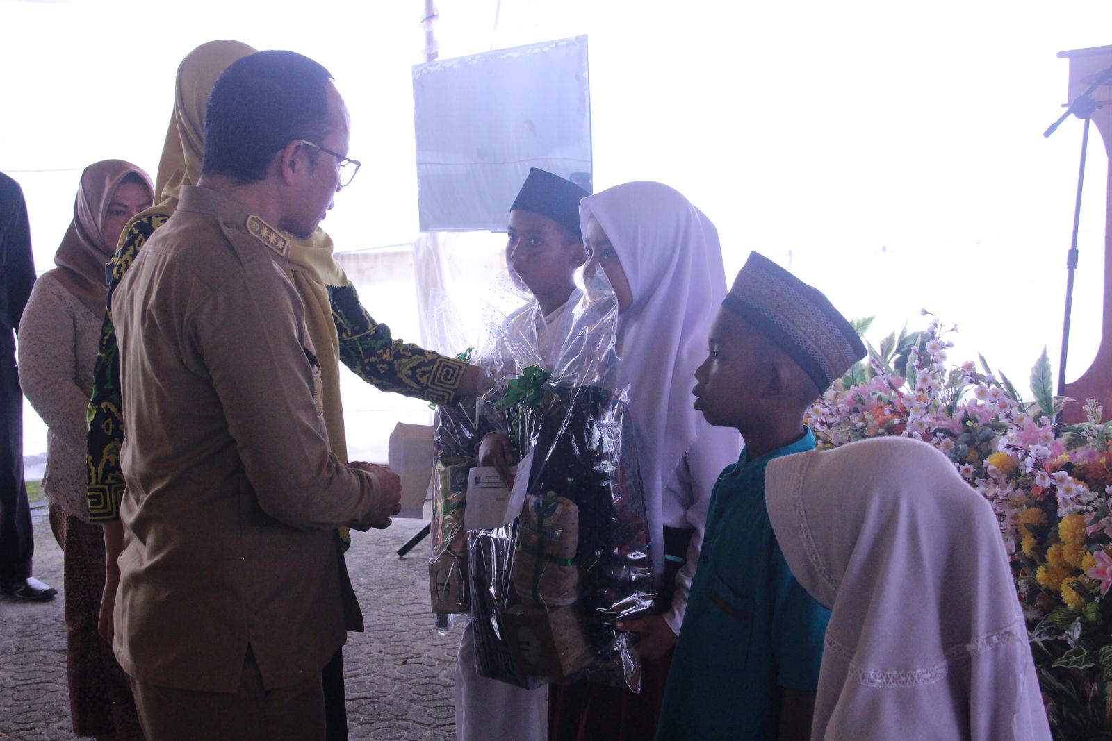 Bupati Bangka Tengah, Algafry Rahman memberikan santunan kepada anak yatim, dan penandatanganan komitmen bersama mendukung RSUD Drs. H. Abu Hanifah akreditasi paripurna (foto: Diskominfota Bangka Tengah)
