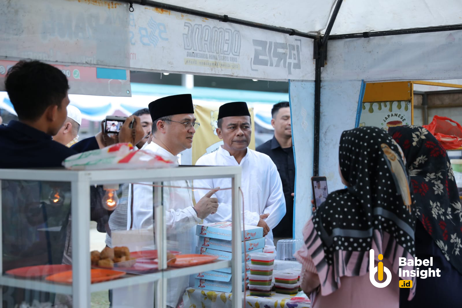 Erzaldi Rosman mengunjungi stan-stan yang ikut serta dalam kegiatan Halalbihalal IPHI Babel yang dilaksanakan di Islamic Center, Sungailiat, Kamis (4/5/2023). Foto: babelinsight.id