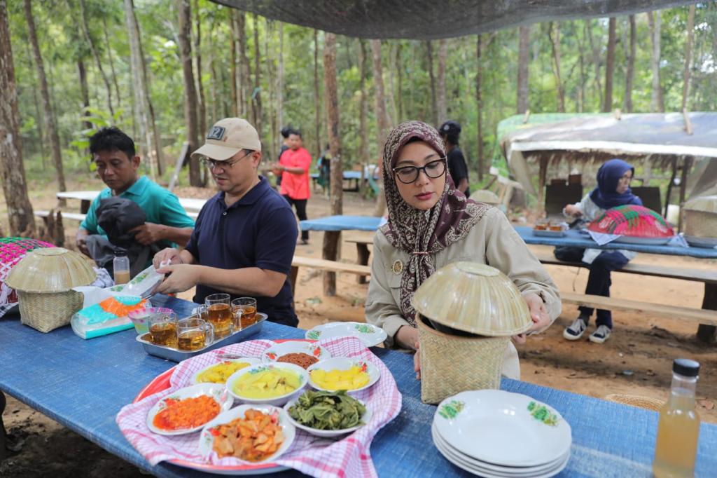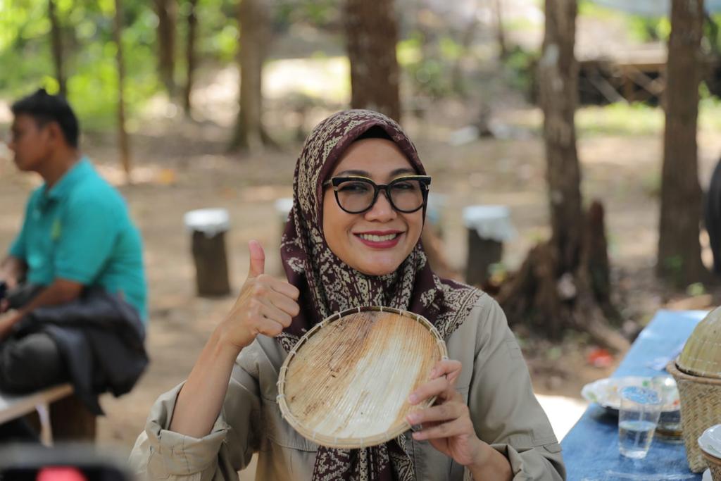 Satu yang juga menarik Melati Erzaldi selain nilai kebersamaan yang dirasakannya saat menikmati bakul randau, yakni penyajian makanannya yang tidak di atas piring modern. Tetapi, pengelola menyajikannya dengan piring anyaman yang terbuat dari tumbuh-tumbuhan yang ada di hutan.