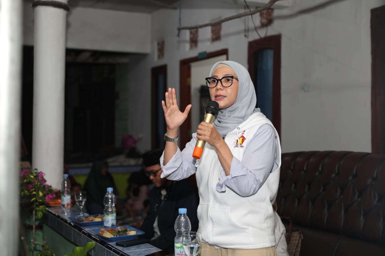 Melati Erzaldi melakukan kampanye edukatif kepada masyarakat Desa Kulur, Kabupaten Bangka Tengah, pada Jumat (15/12/2023) malam. Foto: babelinsight.id